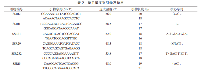 試驗所采用的引物借鑒 了與長尾倉鼠同屬的黑線倉鼠 SSR 位點引物, 并由生工生物工程股份有限公司合成。具體序列以 及特點列于表 2。